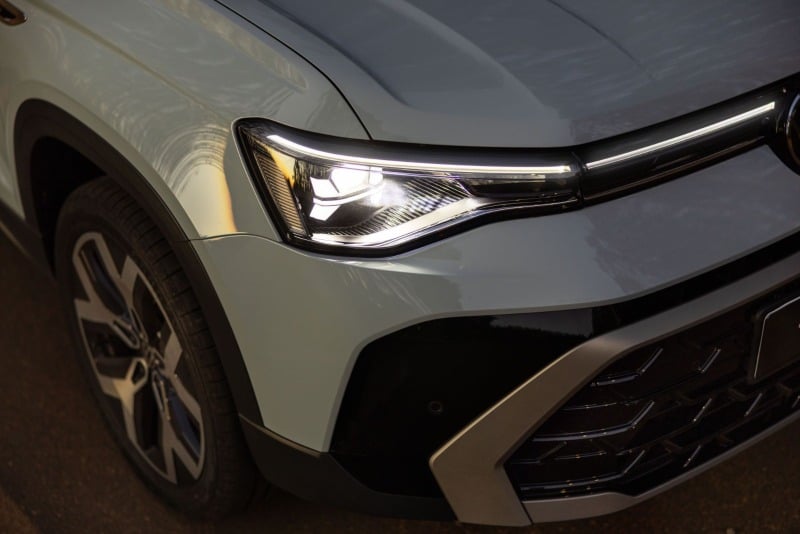 O novo Volkswagen Taos estreou oficialmente no mercado nacional com evento de lançamento realizado na noite desta quinta-feira (22), na concessionária Movel Veículos, em Vitória da Conquista. A apresentação revelou a reformulação estética profunda do utilitário, que exibe faróis, grade e para-choque totalmente renovados, além de uma faixa luminosa em LED conectando as lanternas ao logotipo iluminado na traseira. O modelo preserva competitividade pelo equilíbrio entre custo e benefício, estabelecendo valores de R$ 199.990 na configuração Comfortline e R$ 209.990 na opção Highline.