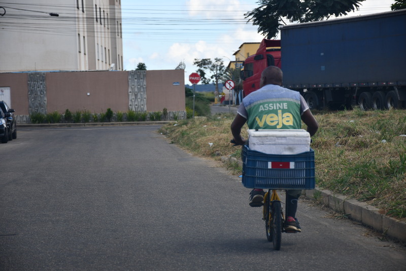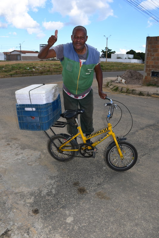 No final da tarde deste domingo (19), o BLOG DO ANDERSON reencontrou uma das figuras mais folclóricas da Joia do Sertão Baiano: René Amaral. Com sua mini-bicicleta característica, ele percorre diariamente entre 60 e 65 quilômetros, entregando revistas, cartas e encomendas por todos os cantos de Vitória da Conquista. Nascido em 23 de setembro, o trabalhador, que completará 55 anos no próximo mês de setembro, observa as mudanças no consumo de informação após 35 anos de ofício.