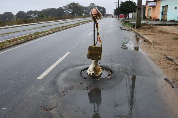 Na Rua Padre José Silvino Santos, Trecho 1 do Corredor Perimetral que corta o Loteamento Morada dos Pássaros III, na Zona Sul de Vitória da Conquista, uma situação de esgoto motivou uma manifestação popular inusitada. A galeria de esgoto, de responsabilidade da Empresa Baiana de Águas e Saneamento (EMBASA), afundou e jorrou muita água suja, o que levou à colocação de uma “Bonequinha com o Vaso” como sinalização de protesto, conforme mostra o BLOG DO ANDERSON nesta quarta-feira (22). A EMBASA deve realizar a manutenção no local, e a “Bonequinha com o Vaso” acabará removida da via após o reparo no equipamento.