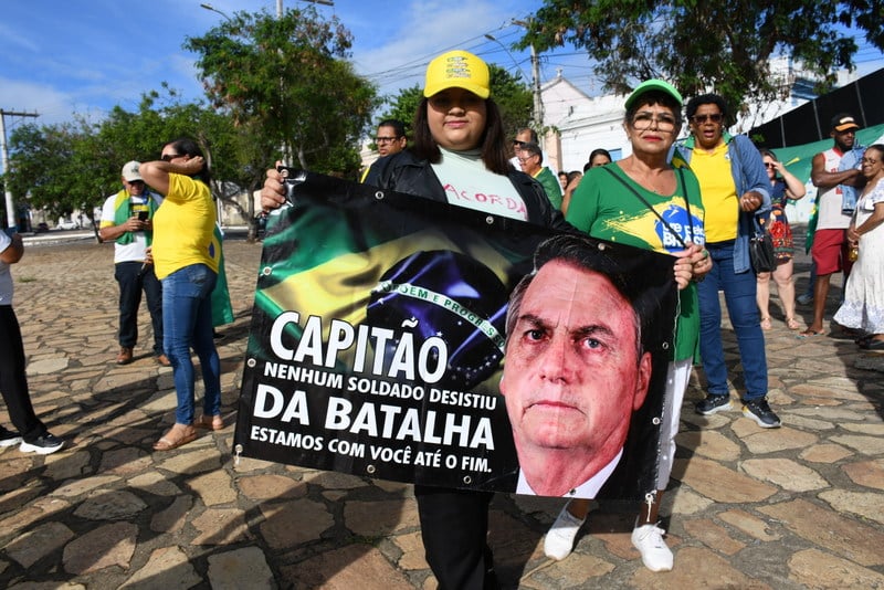 Um grupo de manifestantes concentrou-se na Praça Sá Barreto, em frente ao Tiro de Guerra, na tarde deste domingo (25), em um ato de apoio ao ex-presidente da República Brasileira Jair Messias Bolsonaro. A mobilização ocorre em decorrência da prisão preventiva do ex-mandatário, mantida na Superintendência da Polícia Federal em Brasília desde novembro do ano passado.
