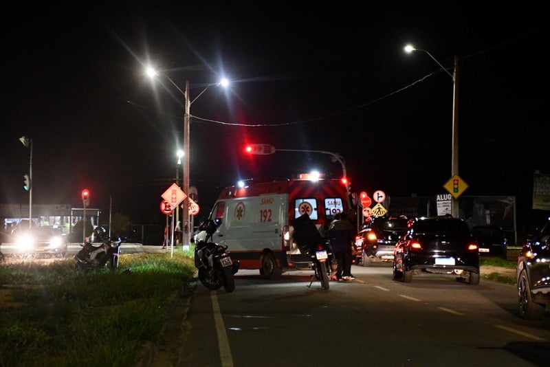 Um motociclista que trabalha com entregas de mercadorias acabou ferido após um acidente registrado na tarde desta quarta-feira (28), na Zona Sul de Vitória da Conquista. O fato, destacado pelo BLOG DO ANDERSON, ocorreu na Rua Padre José Silvino Santos, em uma via de intenso movimento situada ao lado do Shopping Conquista Sul. A vítima recebeu os primeiros cuidados de uma equipe do Serviço de Atendimento Móvel de Urgência (SAMU) e seguiu encaminhada para a Unidade de Pronto Atendimento (UPA), onde passou por avaliação médica. Agentes do Sistema Municipal de Trânsito (SIMTRANS) estiveram no local para registrar a ocorrência.