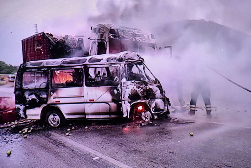 Com o impacto, os veículos incendiaram, causando o óbito imediato de Crézio Oliveira Prado, de 58 anos, e Leandro Prado, de 44 anos, que seguiam para a feira livre do município com mercadorias adquiridas no Ceasa de Vitória da Conquista. As chamas consumiram os automóveis por mais de seis horas, exigindo a atuação do Corpo de Bombeiros e provocando o bloqueio total da rodovia até o período da tarde.