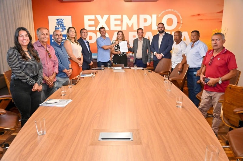 Na manhã desta terça-feira (10), representantes do Sindicato dos Condutores Autônomos de Veículos Rodoviários (SINCAVIR) compareceram ao Salão Nobre do Palácio da Joia do Sertão Baiano para apresentar e debater demandas da categoria. Durante o encontro, a prefeita Ana Sheila Lemos Andrade assinou o decreto nº 24.097/2026, que regulamenta a prestação do serviço de Transporte Individual de Passageiros por Veículo da Categoria Táxi em Vitória da Conquista. A prefeita Sheila Lemos recepcionou o presidente do SINCAVIR, Nilson Costa Pinheiro, e membros da diretoria do Sindicato, acompanhada dos secretários da Casa Civil, Ivanildo da Silva, de Transformação Pública, Edimário Freitas de Andrade Júnior, e de Relações Institucionais, Kalilly Lemos Santos da Rocha. Ao longo da reunião, os representantes agradeceram ao Governo Municipal pelos esforços em atender às necessidades da categoria, como a lei que autoriza a transferência de autorizações de táxi, e o novo decreto de regulamentação, construído após muito diálogo entre membros da Administração Municipal e o Sindicato. A prefeita Sheila Lemos destacou a nova identidade visual da frota de táxi, que traz benefícios à população e à cidade, e ressaltou que o Governo trabalha para melhorar a mobilidade urbana da cidade por meio de diferentes ações, como melhorias no transporte público, sinalização das vias, e afirmou que a Prefeitura estuda a regulamentação do transporte por aplicativo.