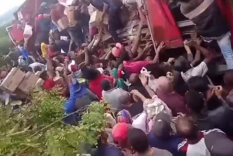Uma carreta carregada com leite em pó tombou no acostamento do Anel Rodoviário Jadiel Vieira Matos, em Vitória da Conquista, na saída para Planalto, por volta das 6 horas da manhã desta terça-feira (14). O acidente, com imagens impressionantes, resultou em ferimentos leves no motorista, que acabou encaminhado ao Hospital Geral de Vitória da Conquista. Apesar de a rodovia não precisar de interdição, a ocorrência registrou uma cena lamentável: a carga acabou completamente saqueada por pessoas que passavam pelo local. A Polícia Rodoviária Federal (PRF) adverte que, conforme o Código Penal Brasileiro, o saque de cargas equivale ao crime de furto. Uma perícia técnica deve apontar as causas oficiais do tombamento.