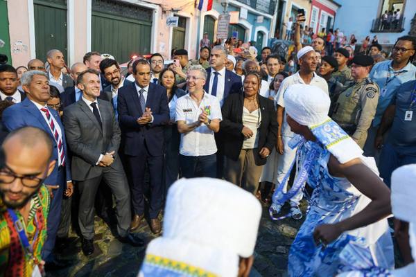 Em um ato que uniu fé, cultura e história, o presidente da França, Emmanuel Macron, foi recebido no Museu de Arte Moderna da Bahia (MAM-BA), nesta quarta-feira (5), no Dia Nacional da Cultura, para a abertura do Festival Nosso Futuro Brasil–França: Diálogos com a África. O evento transformou o museu em um espaço de encontro entre história, arte e ancestralidade. A solenidade reuniu autoridades como a ministra da Cultura, Margareth Menezes, o governador da Bahia, Jerônimo Rodrigues, e o prefeito de Salvador, Bruno Reis, além de 300 jovens do Brasil, da França e do Benin. Macron chegou ao aeroporto, recebido pelo governador, e fez um passeio turístico pelo Pelourinho, onde recebeu o carinho da comunidade e assistiu às apresentações da Banda Feminina Didá, Bloco Afro Olodum e Filhos de Gandhy.